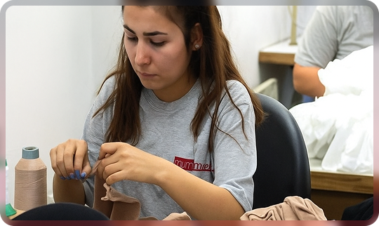 All sewing operations such as top band stitching, net stitching, edge stitching and label stitching are performed.