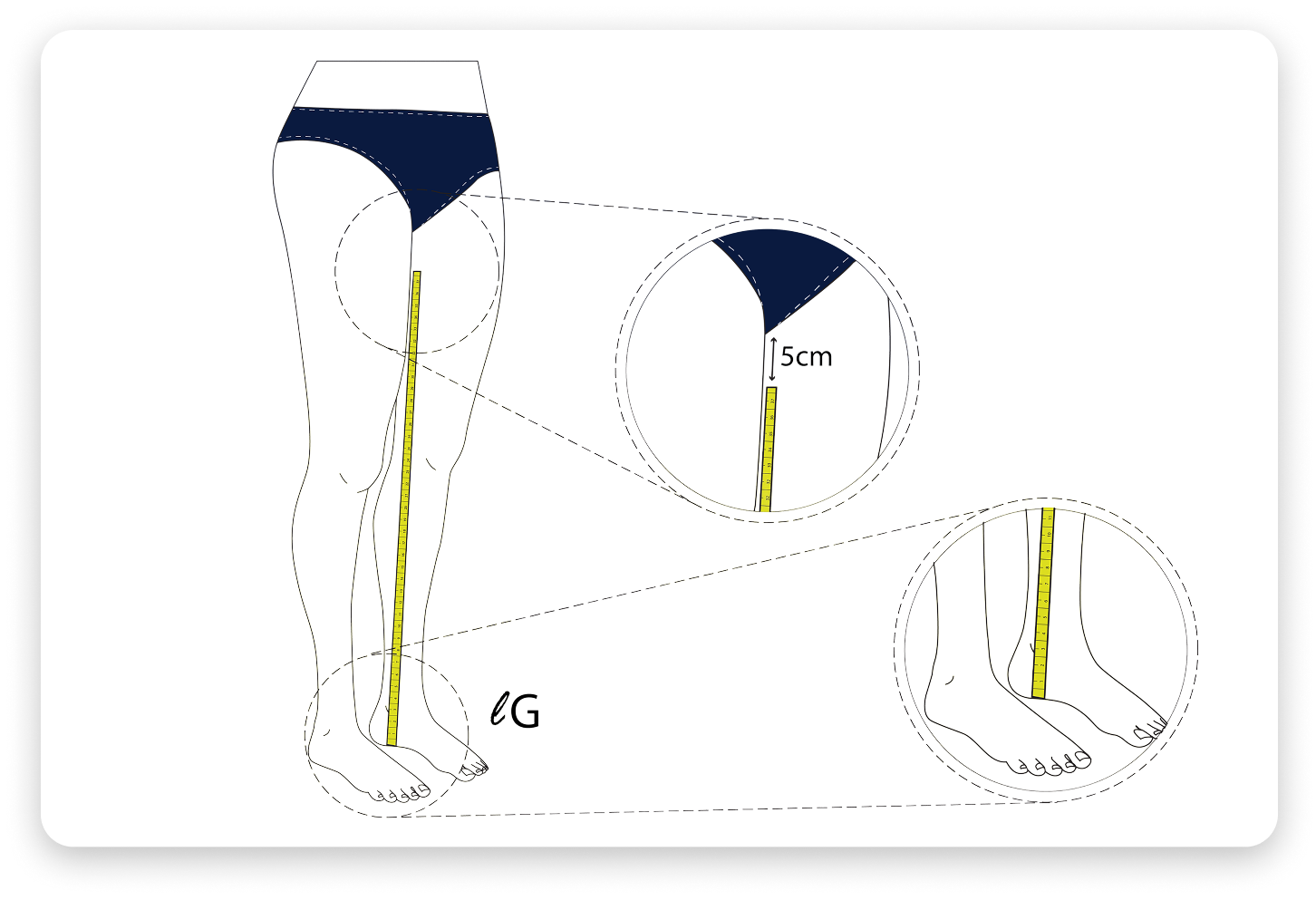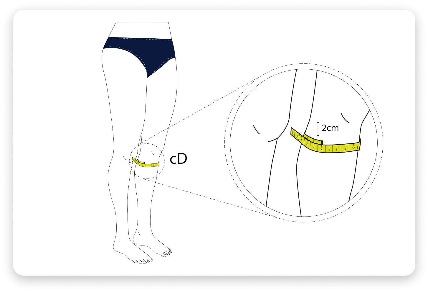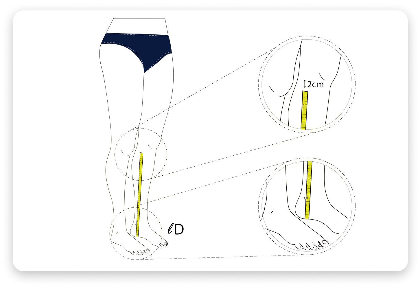 Measure the length of the leg from the floor to 2cm below the knee. Take this measurement from the inside part of your leg